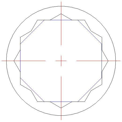 For those thinking of buying a "standard" socket off the shelf, a 50-mm 8-sided socket would be 0.4-mm (0.015-in) oversize and should work. A 50-mm 12-point socket can catch 4 corners of the octagonal nut and will be (nominally) 0.015-in oversize (should also work). Image at right is a CAD drawing of this arrangement. Click for larger image.