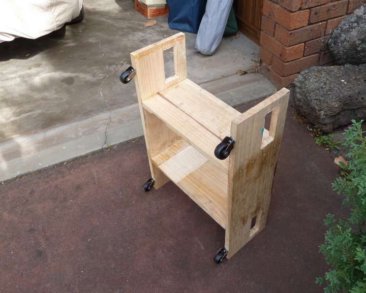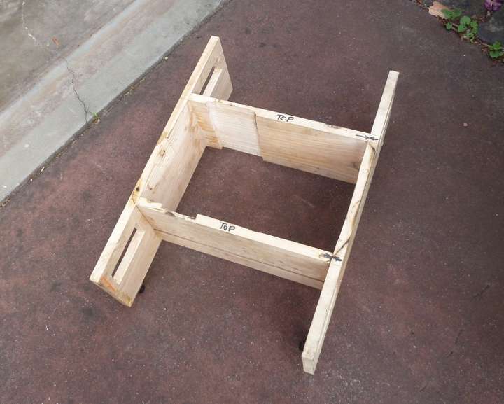For design dimensions see the prior article. This one is screwed together without hinges, so it doesn't fold up but it should be more sturdy for pushing it around on the shop floor.