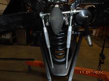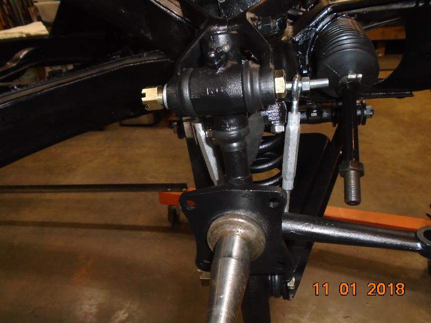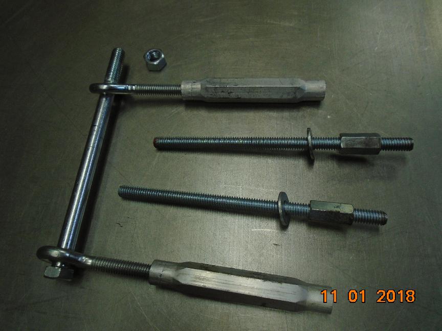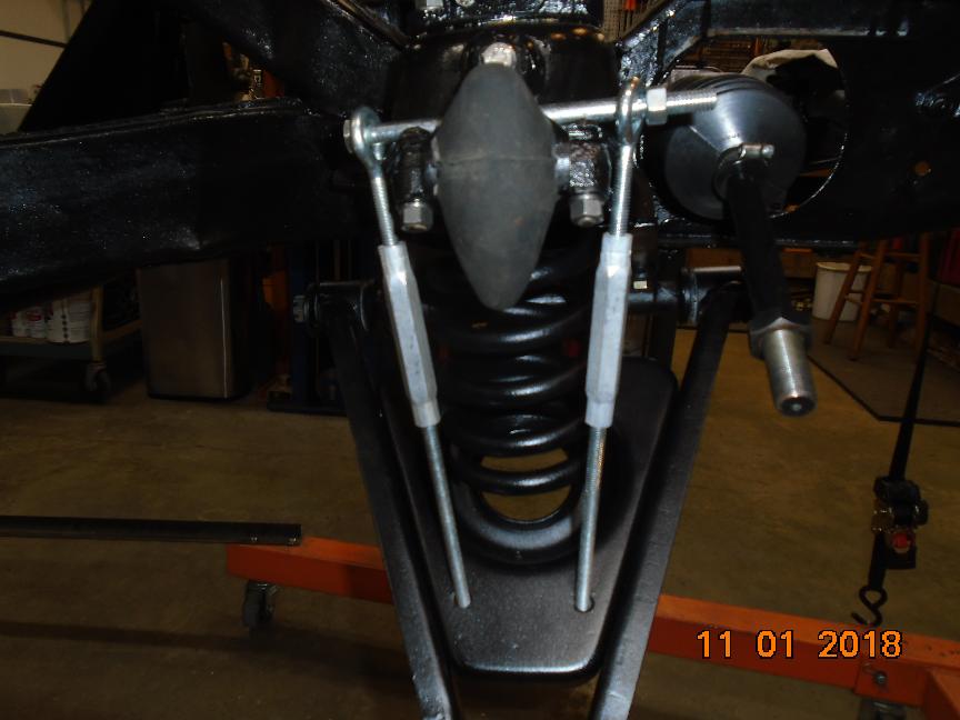 I just finished refreshing my front shocks per FS-129. Since the frame is on a rotisserie I couldn't use the first method shown in FS-116 to remove the springs, so I fabricated my A-arm spring compressor using two 5/16" turnbuckles and two 5/16" threaded rod pieces 6" long. I replaced the RH thread end hook on the turnbuckle with the threaded rod and fed it through the two holes in the spring pan and used 5/16" threaded connectors instead of nuts on the end to provide more length under the spring pan for the wrench to grab onto. I ran the threaded connectors up as far as I could on the threaded rod until my 1/2" deep socket bottomed out and the finished by using the turnbuckles until the bumper surface on the swivel pin rose above the bumper. As the bolt behind the bumper started tilting to one side I switched to tightening the other side. The total cost was less than $10.