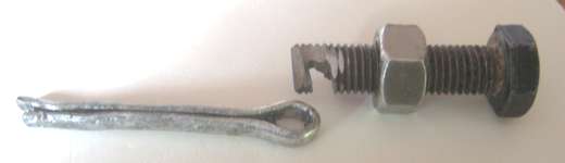 "I had to take the front WW hub off and was faced with the task of removing the cotter pin from the wheel nut. Well it got in a position where I could not straighten the pin legs through the hole in the splined hub. So I made an extractor using a 5/16 bolt. Worked great".