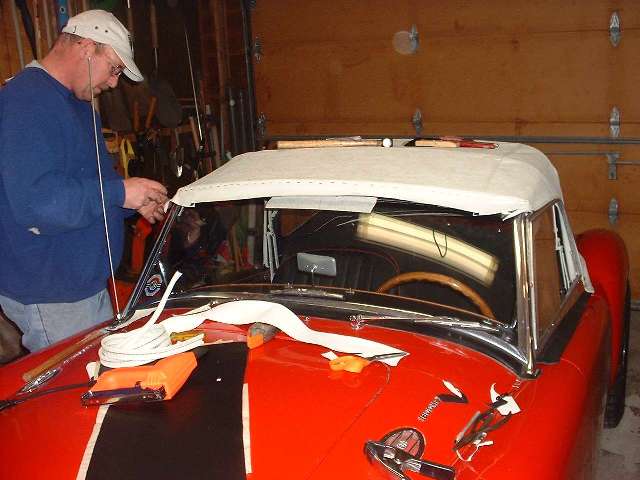 The early 1600 type bow can be used on the 1500 if you want to install the center latch (or when the early part is no longer available). The late 1600 type bow can be used for earlier (narrower) rag tops if you shorten (cut down) the ends of the wood bow to meet earlier dimensions (about 3/4-inch on each end). Using the longer late 1600 type bow with earlier (narrow) rag tops results in the downward hanging side flaps being a little too high at front and too far out, holding the side curtains away from the windscreen posts. If you run into this situation after the top is installed, you have to burst some stitches near the front to let the hanging flap move inboard.