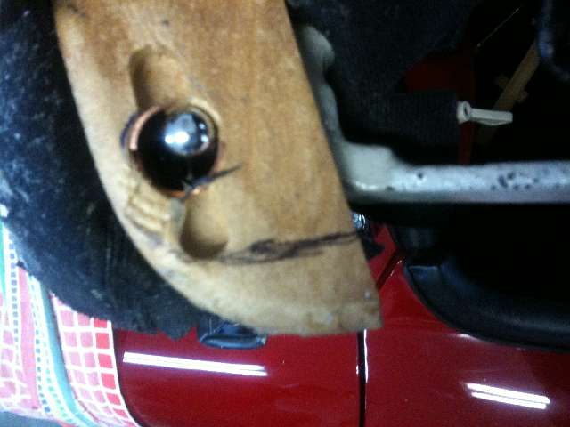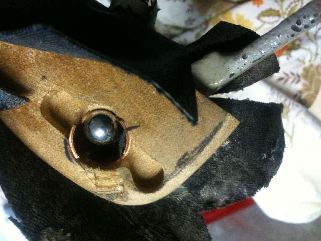 Pictures below show the fix for this problem. Trim the third type long wood bow back about 3/4-inch on each end. Squae it off some, and do not run into the bushing tab slot, as it still needs to hold tacks or staples.