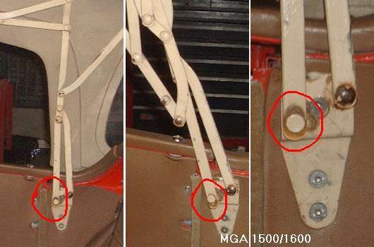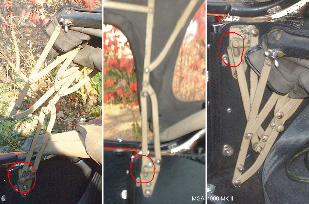 Pictures above are for the 1500/1600 type top frame. Pictures below are for the 1600-MK-II type top frame (after Car No. 78249). For the later top the front leg is a bit longer, and the slot at bottom of the front leg is longer, simple as that.