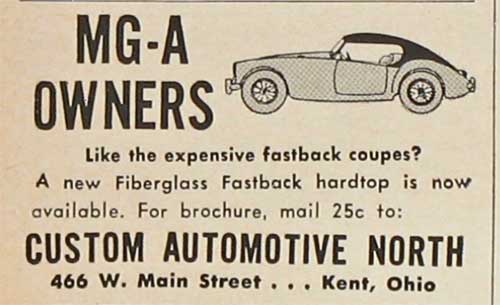 "I bought a 1958 roadster in January of 1959, used with 5998 miles on it. It had the flip up side curtains, which were a machoist's delight. They eventually found their way to the trash and were replaced with sliding panels. The A now belongs to my son, Chris, who has restored it. He recently sent in the photo of the fastback hard top that I regrettably did not purchase. As I remember the supplier/manufacturer was located in Ohio."