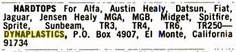 Dynaplastics was in business in South El Monte, California from 1975 or 1976, but long since closed. There are a number of internet references to MGB hardtops made by Dynaplastics. The brand name on these tops is Royal Coachman.