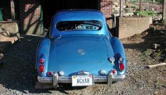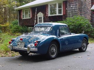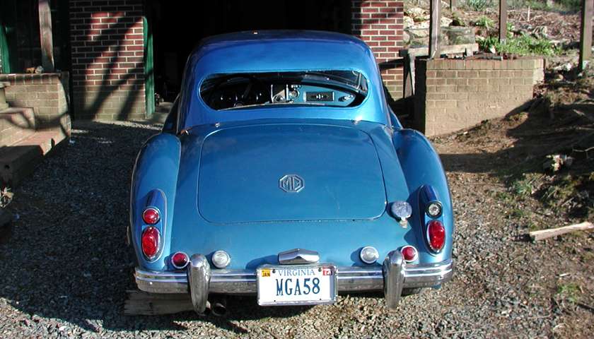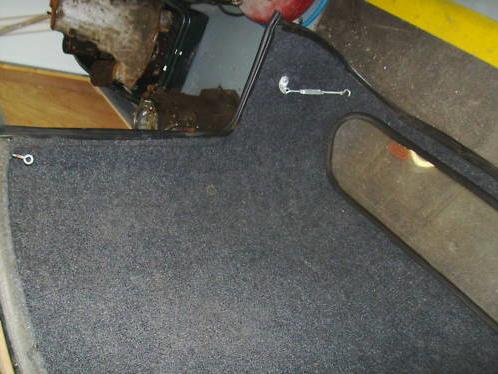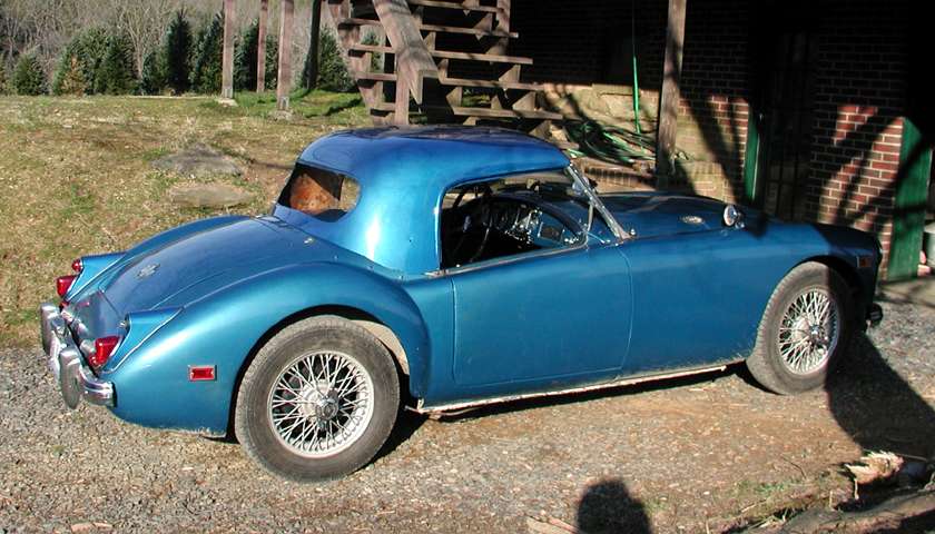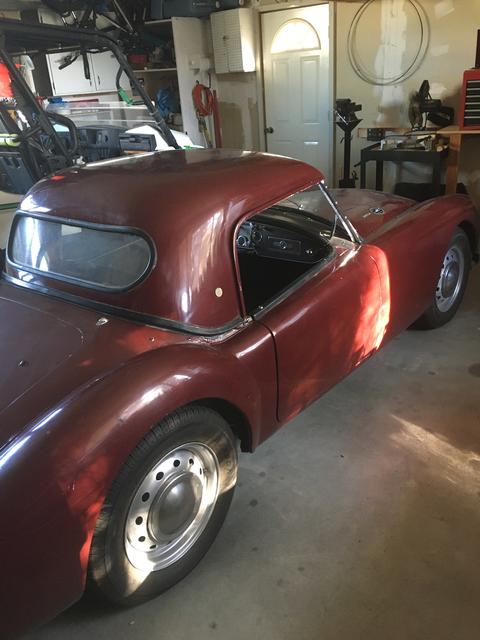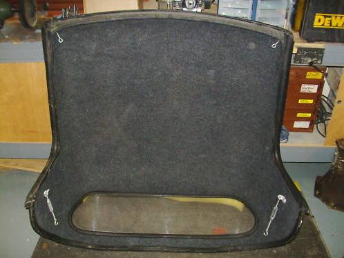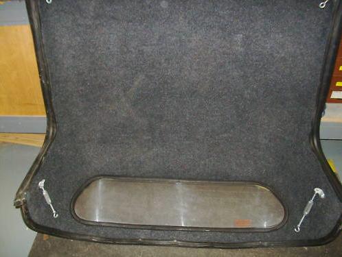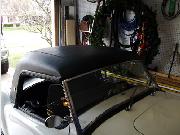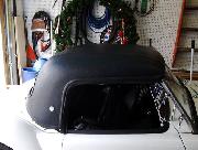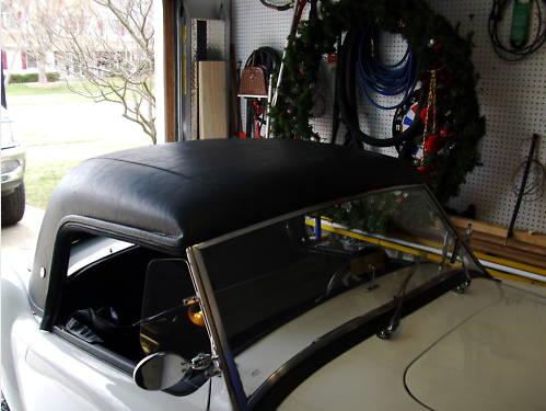In these potos, the vinyl outer covering is not original for the Parish Plastics hardtop, and all of the visible attachment fittings are non-original substitute parts. Originally the Parish Plastics hardtop can use all of the same attaching parts as the factory original hardtops.