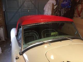 " I’ve just acquired a fiberglass hardtop, it came over from the US. No markings I can see. It has flat strengthening bars moulded into the rear behind the perspex window and alloy weatherstrips above each door. It slots onto the windscreen posts but uses a crude collection of threaded clips to fix under the top rail. J bolts to fix to the underneath of the scuttle sides. No headlining at this time. It also came with a chromed 'flexi strip' that pushes into the rear window rubber, presumably to lock the window in place".