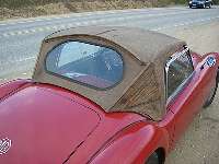 Every once in awhile I sign on to Craigslist or the Recycler websites and search for "MG" just to see if anything interesting is out there. A month ago I saw a listing for a "Wooden" MGA hardtop. My email inquiries were promptly answered: Yes, it is made of wood with a glass window; yes it fits onto the MGA windshield and side turnbuckles to the soft top frame; no sorry no pictures available. Not much other information, except that it was made in Humboldt county as a custom one-off fabrication, fashioned after the profile of the soft top, and it seems to be solid oak hardwood.
