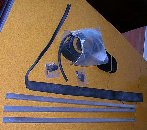 Rubber seal for the passenger window frame $25/pair. Aluminum finishing strips, $21/pair. The correct chrome screws and finishing fasteners were another $12. Felt channel for window, $5. Plexiglass replacements $69/set.