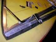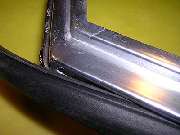 STEP ONE: Soap the rubber strip and the inside channel of the aluminum frame. Slowly work rubber flange-edge into the channel and up the length of the frame. Once you've done this, lay the frame and rubber out and put the aluminum finishing strip on top of it.
