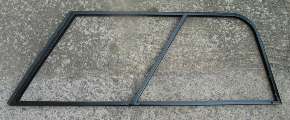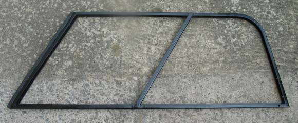 Above is a picture of a left hand bare steel side screen frame with the half round rubber molding glued along the front edge. Note the drainage hole at the bottom right.
