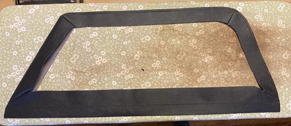 Now fit the new vinyl cover on the frame. Stretch and fit so the flaps and ridges line up to the inside and outside edges as original. I clamped mine on and left them in place to stretch to shape over several weeks.