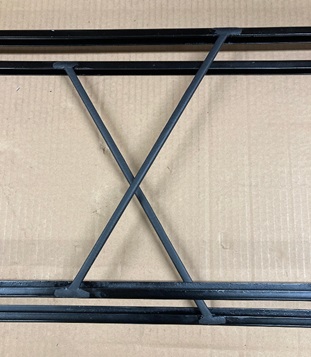 Using scrap vinyl, cover the stiffener strip in the center of the frame. I used contact cement to adhere it to the painted metal. There should be an extension on each end to continue the strip onto the frame.