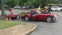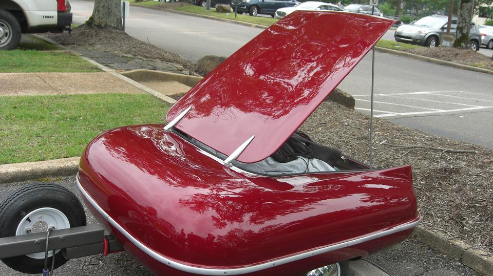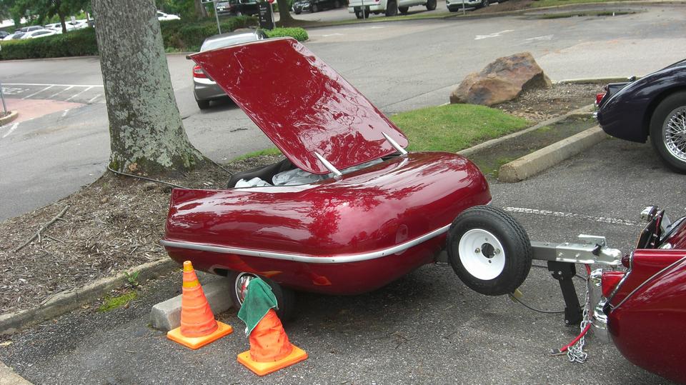There was a very nice luggage trailer painted to match the MGA Coupe that was towing it. Seen at NAMGAR GT-48 gathering in Memphis, Tennessee in June 2023.