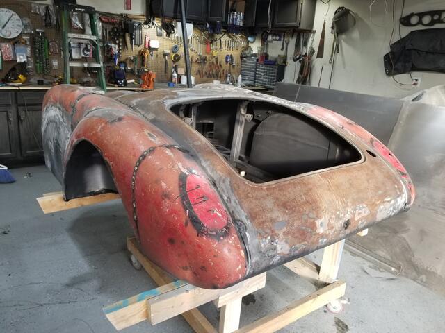 This is a project undertaken by Christopher Steingrube (GrubeGuy on the MG Experience MGA Forum) to build an MGA bodied cargo trailer to be donated to Make-A-Wish foundation. Started in December 2021 with a cast-off body shell from an MG MGA car, nearing completion in June 2022.