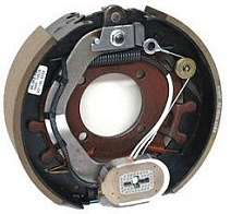 Electric trailer brakes are more user friendly and accept better control input. These are usually in the form of drum brakes with a mechanical actuator arm inside, similar to a mechanical parking brake. There will be an electric magnet similar to a solenoid that will push or pull on the lever to apply the brakes. Each wheel will have a self-contained electric brake assembly. Braking force is determined by the amount of electrical current in the magnet. The current will be controlled by an in-vehicle electric brake control.