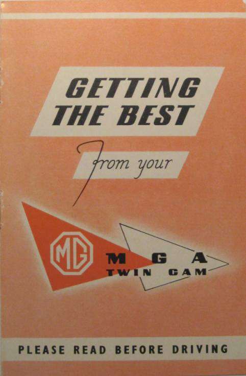 For the MGA Twin Cam owner, MG issued a small pink leaflet entitled "Getting the best from your MGA Twin Cam". It has, in large letters, "PLEASE READ BEFORE DRIVING". No doubt this was because the car was being used by owners who did not understand the requirements of what was essentially a road-going racing car. (BMC publication AKD1412). If anyone has a copy of this publication, please holler. One recently sold on eBay for GBP-75.00