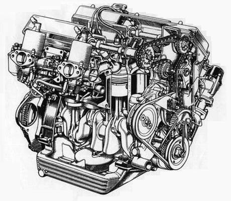 There are a number of frame and body modifications done to accommodate installation of the twin cam engine. The steering rack and radiator are moved forward, the bonnet is crowned higher (carried over into all other models) with different inner brace pattern, different prop rod position and a small frame relief to clear the front carburetor. The inner fenders have removable access panels (except not on the first 91 cars). inner "dimples" to clear the distributor (left front) and air cleaners (right side) duplicated on all successive cars, radiator mount diaphragm moved forward, and shortened air pan in front. The heater box is a mirror image from the pushrod engine cars with the air intake duct on the opposite side, the cut-out in the shelf also offset to the opposite side, a different pattern for the bolts between heater shelf and frame goal post, and the heater water valve is mounted on the heater inlet pipe rather than on the engine.