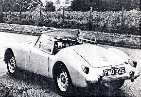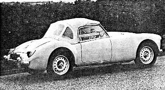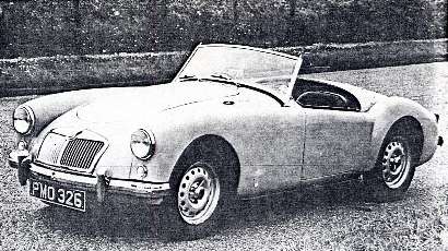 The new model also has Dunlop 10-3/4in disk brakes, centre-lock steel wheels and Road Speed tyres, which are not fitted to the standard MGA. The road test car was an open model equipped with hood and side screens and all optionally extra equipment. A coupe version of the car is available.