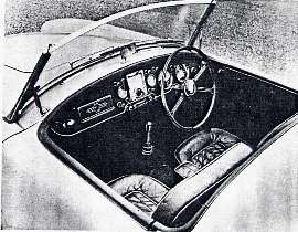 Fitted to the test car were the competition-type seats, which have a padded roll around the edge of the back rest, and long cushion; they proved most comfortable and provided firm support at a good angle. Driver and passenger are well held when cornering fast, and long distances can be covered without fatigue. The proximity of the engine and gearbox can bring about an uncomfortably high temerature around the legs and feet; it is probably that owners in hot climates will call for spare fresh air ventilators. On the other hand, the warmth would be appreciated in winter conditions.