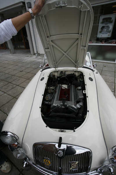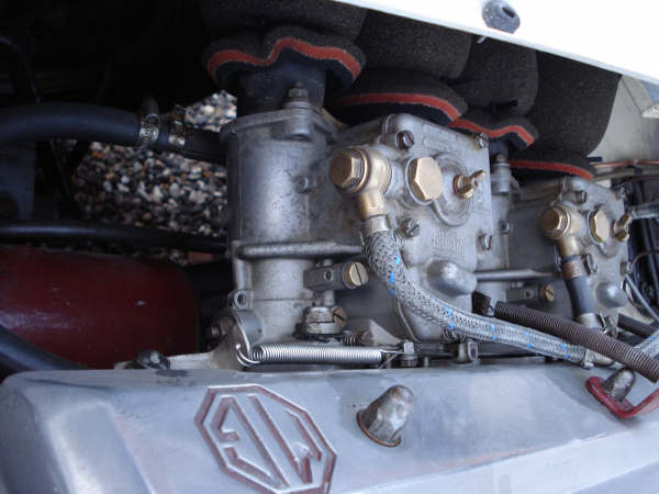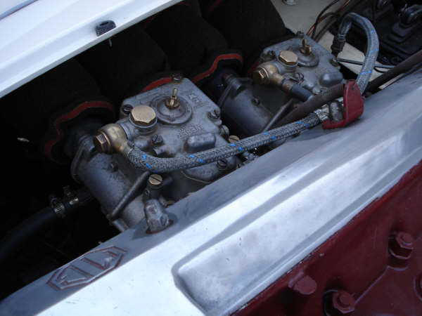 "Since July 2007 I am the happy owner of the above MGA Twin Cam. I bought it from Stephen Beasley (UK). This particular car has twin Webers (42 DCOE8) instead of the standard SUs. It was raced at Silverstone by one of the previous owners, Dave Ryland. .... The twin Webers is said (Stephen Beasley and in some of the non-official papers that came with the car) to be factory fitted. However, I can not find any official data to confirm that.