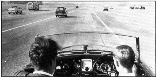 The view from the MGA Twin Cam '119 EMB' during a Fifties'