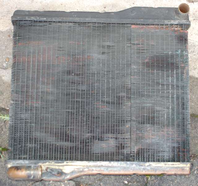 Here is front and back of one MGB radiator without the side brackets. Somewhere in the MGA Twin Cam Enthusiasts Group archives is considerable information about building a Twin Cam radiator. Apparently the trick is to use two MGB bottom tanks. The one installed on top needs to be modified for the pipe to come out the back rather then out the front.