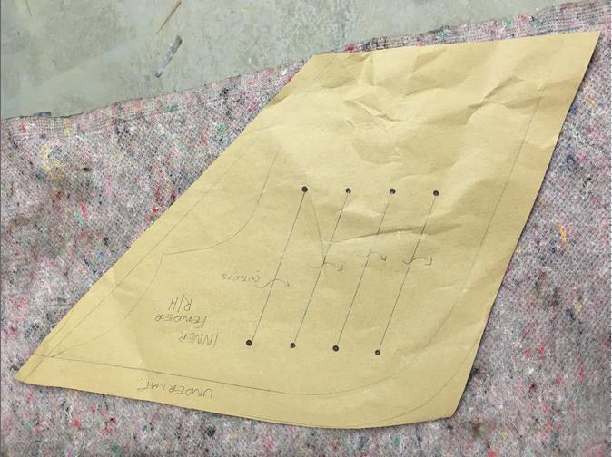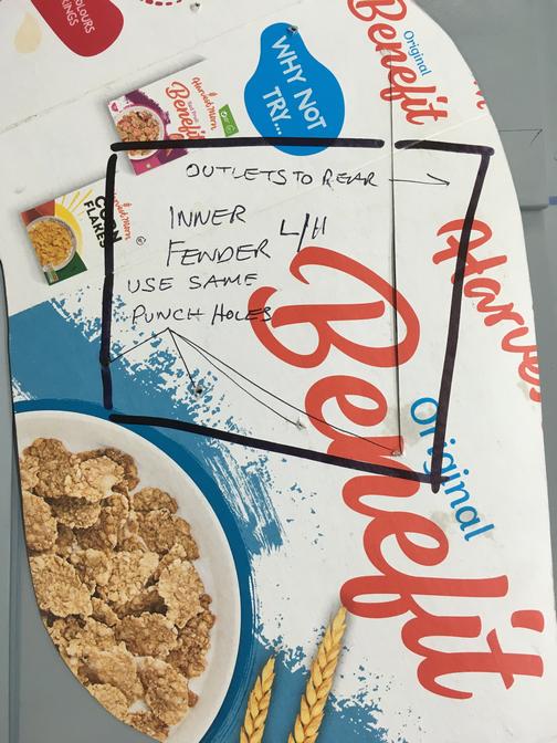 The cardboard template can be reversed to make the L/H inner fender vent see pic6 I used a swage to create the joggle@ 20mm for the under-lap. Each side will need shaping to fit the contours of it's relevant inner fender and may need some hammer and dolly work or a shrinker to the edge of the under-lap area". -- Mark