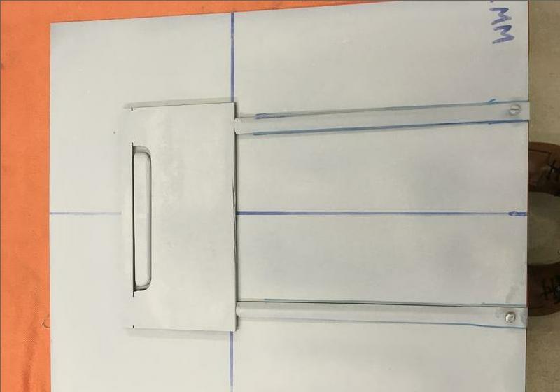 The template was placed over the ally sheet and scribed around adding the desired under-lap. The 8 points were center punched through the cardboard to mark the work piece. The sheet was then placed in position under the angle iron Pic1 clamped down securely and scored heavily with a box cutter using the center punch marks as a start and stop for each of the 4 cuts. The 20mm angle shown in Pic1 is positioned for a right handed downward cut with left handed fingers behind the angle iron for safety!! I found it best to have a spacer under one end of the angle iron so I was able to release one clamp and slide the work piece to the next position. The sheet must remain flat until all four vents are pressed sequentially as numbered in pic 5.