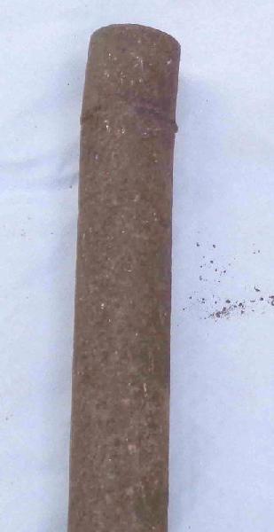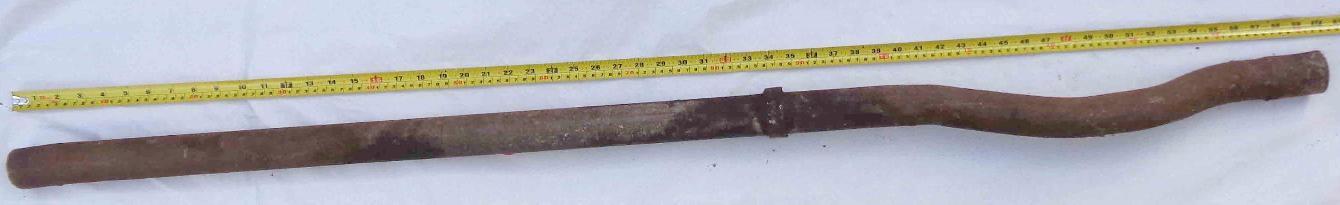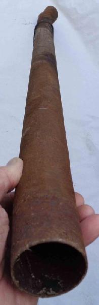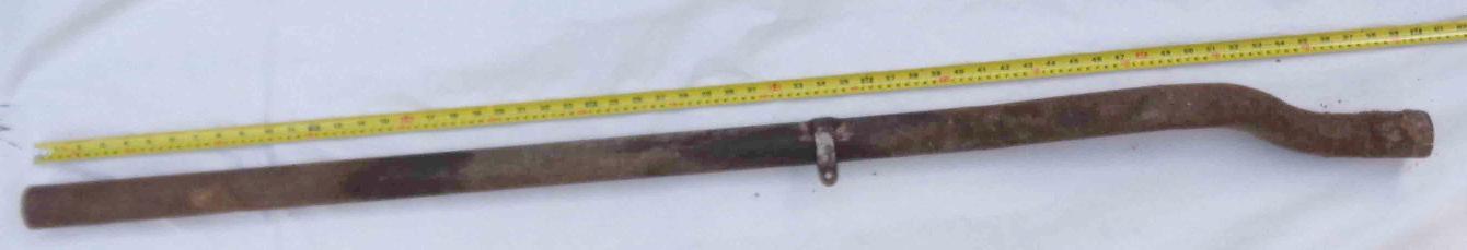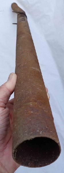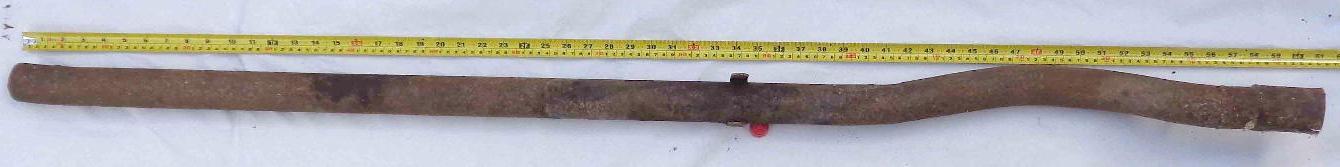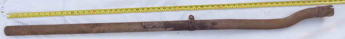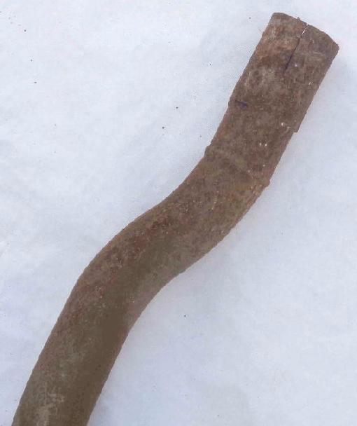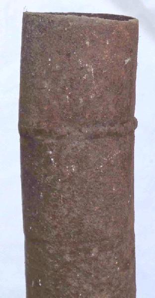 Intermediate pipe viewed from front end slightly above the plane. First picture below left has the pipe upright with center hanger up. Successive photos have the pipe rotated clockwise in 90-degree steps.