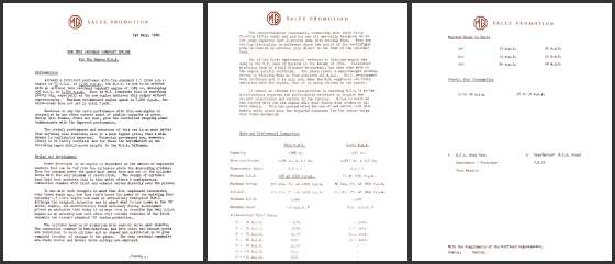 This is a Sales Promotion letter issued by The Nuffield Organization on July 1, 1958, two weeks before Press Demonstration Day, July 14, 1958, and the official release date for the MGA Twin Cam on July 15, 1958. Click for larger 0.4-MB pdf copy.