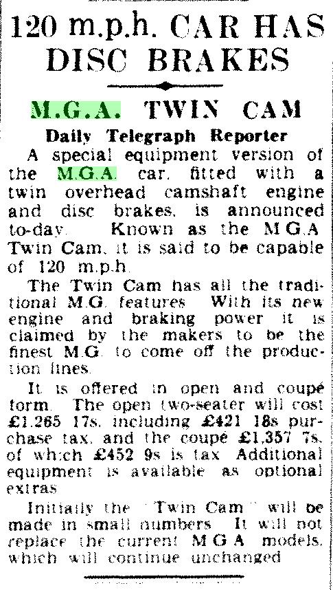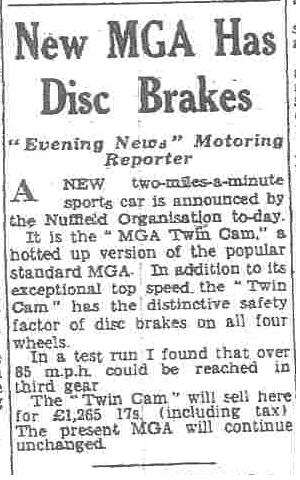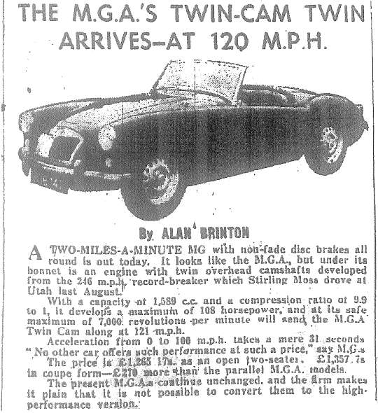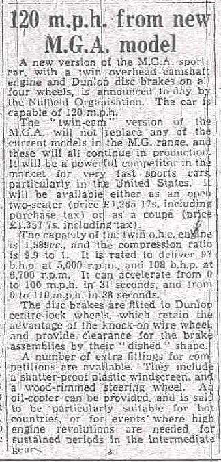 Launch of the MGA Twin Cam - (Press Articles Jul-15)