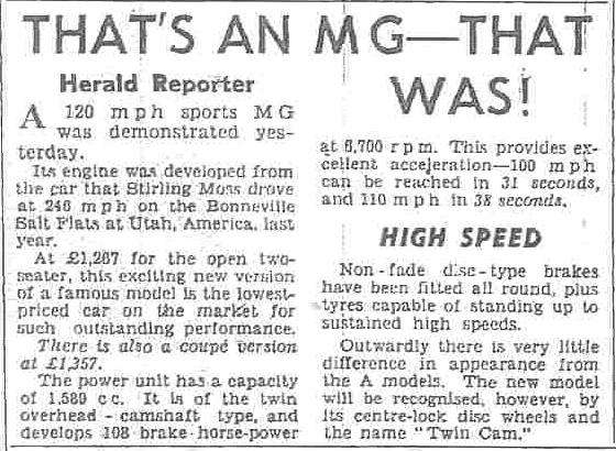 Launch of the MGA Twin Cam - (Press Articles Jul-16)