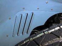 Five months into Twin Cam production (with slightly less than 100 cars produced) detachable panels were incorporated into the body front wheel arches for easier access to the engine components. Prior to this change some creative mechanics would add a slot in the right wheel arch for clearance for a long wrench for adjusting the dynamo and fan belt tension.