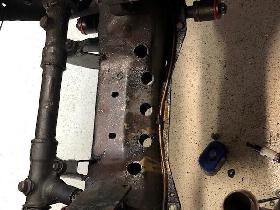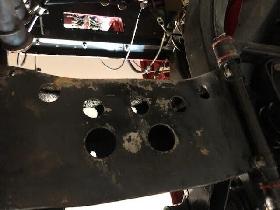 Early in Twin Cam production, five holes were added in the front cross member to allow easy access to the front bolts of the engine sump. If you have an early Twin Cam car which does not have these holes, you can add them as prescribed by the factory. From gathered statistics car no. 600 does not have the holes and 602 does, so it appears that the first 100 Twin Cam frames did not have them.