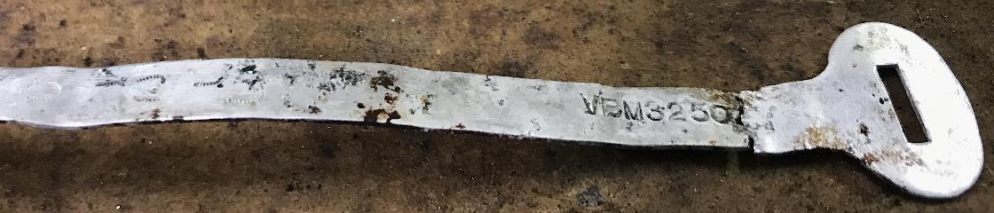 "My M/C has an aluminum strap with the part number stamped (VBM3250)". Size of the number tag strap is 6-9/16” long and 1/4” wide