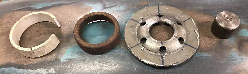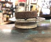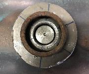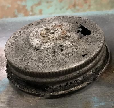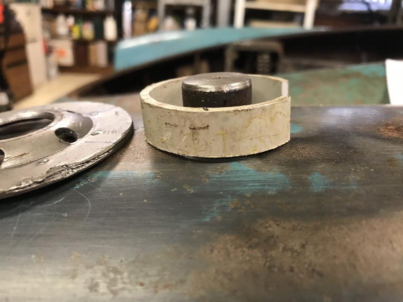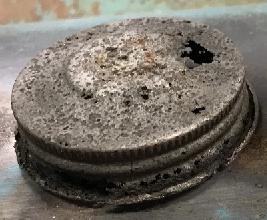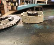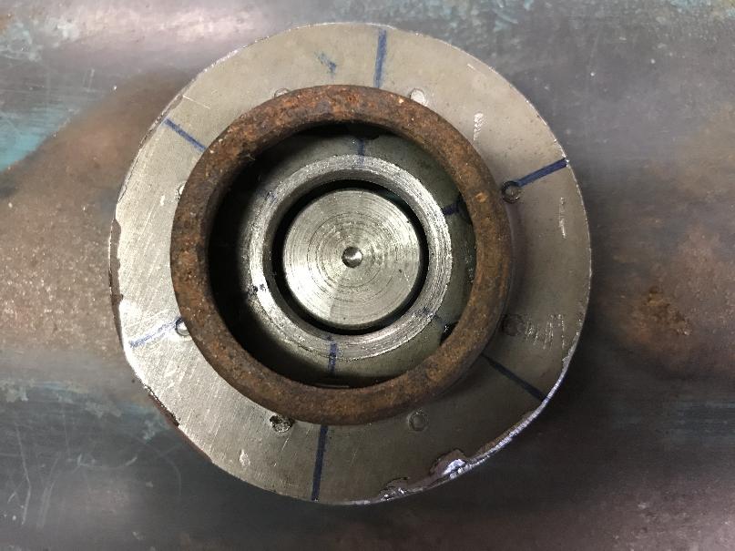The female part of the tool utilized the base plate of a used spin-on oil filter (Figure 1, third from left). The threaded hole was turned to 24mm and because it has a dish (48mm diameter) that is close to the diameter of the cap, this can be placed to follow the slight dome of the existing shape. I think a flat plate with a 24mm hole would probably work just as well for this. The size of the hole will determine the radius of the dome. A larger difference in diameter from the lower male piece will give a smoother transition.