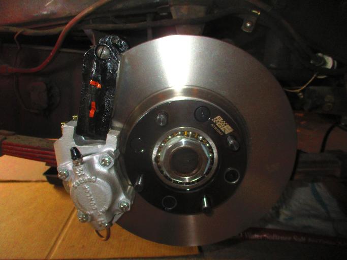 When, during operation, the adjusting screw pulls the outer pad carrier towards the disc it also moves the threaded caged nut towards the inner pad carrier and so compresses the spring. When the handbrake is released, the spring can expand and push the inner pad carrier in the opposite direction to which it pushes the caged nut and the adjuster screw. This restores the original distance between the inner pad carrier and the head of the adjusting screw at the outer pad carrier, allowing the total pad clearance to be possible again, but does not ensure that each pad is equidistant from the disc. Also, the outer pad carrier arm is able to move back and forth slightly due to the side clearance between the adjuster screw and the arm, together with the domed shape under the screw head. Later versions of the handbrake on other cars (not the Twin Cam) had a two pronged retractor spring to overcome this.