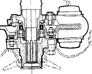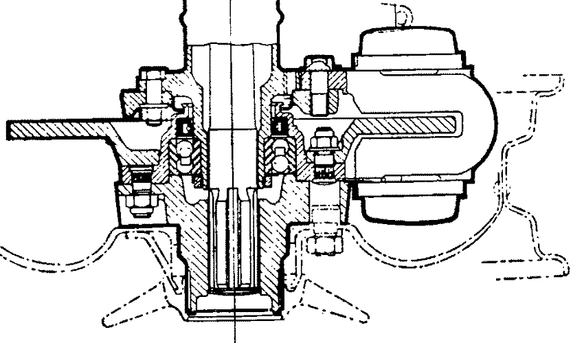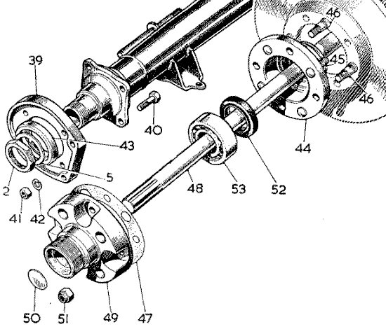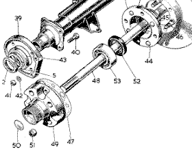 This part should not be a problem, except that we're a bit short on information. It is item number 43 in the illustration at right (from the Service Parts List). On the pushrod cars with rear drum brakes, there is a labyrinth arrangement in this area that may help keep dust out, but is surely intended to direct any oil leaking from the hub to run down the inboard side of the brake backing plate (to avoid getting oil on the brake shoes).