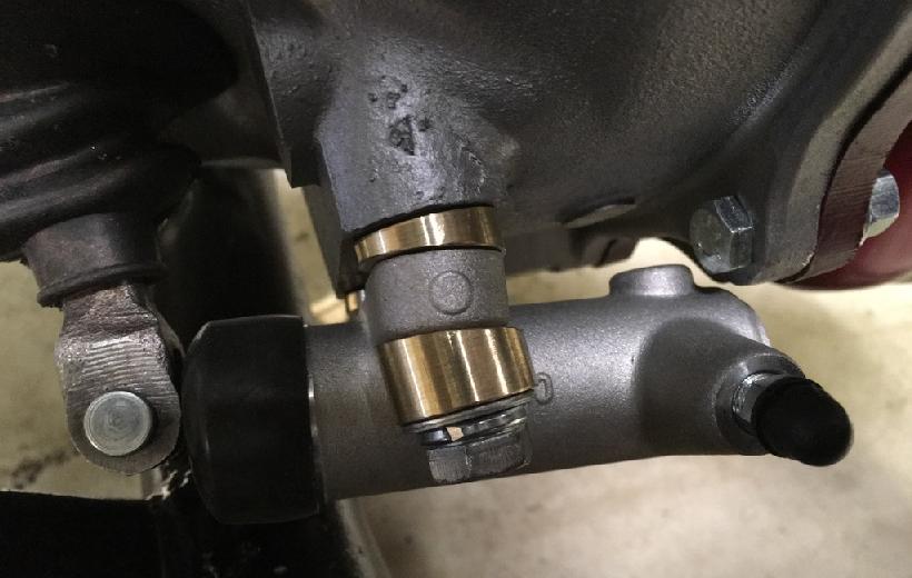 "Assembling the clutch hydraulics on my Deluxe, I managed to fit the 'County' slave cylinder using the method shown. This corrects the alignment of the push rod".