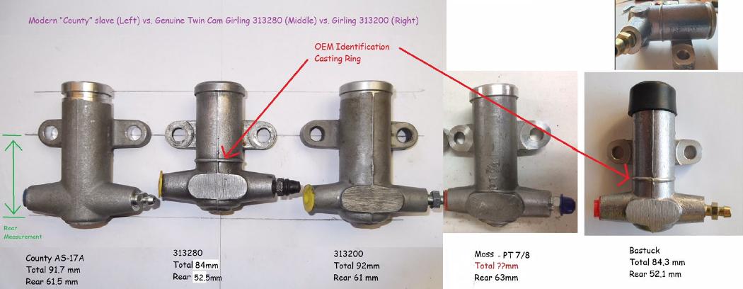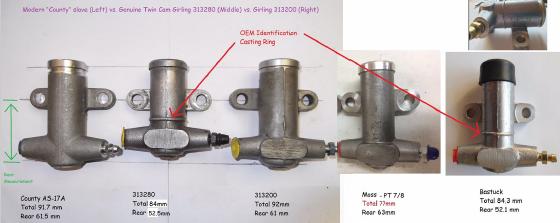 It would seem the County cylinders are about 25 to 30 thou Longer than Girling 313200 (the longer cylinder) making them even tighter for a Twin Cam.