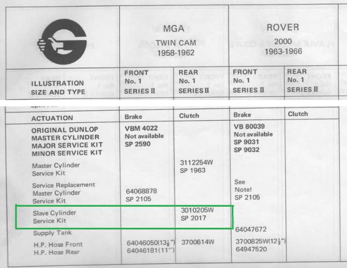 An original Girling MGA Twin Cam clutch slave (Girling 313280 7/8 Inch Diameter) seems to be difficult to find these days. Vendors on eBay are selling what is described as an MGA Twin Cam clutch slave (made by County) but this “County” slave is also sold to the Austin Healey 3000 fraternity.