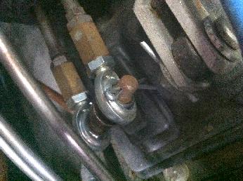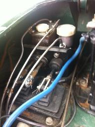 The two pushrods have ball end joints, and the clevis pin is simply passed across the two ball ends and through the plain bore at top end of the pedal. Given that this is close coupled, there is no adjustment for front to rear pressure bias, which should give equal pressure for all pipes same as the original single line setup.