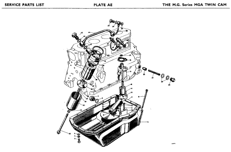 Twin Cam Service Parts List plate AE, no drive gear shown.