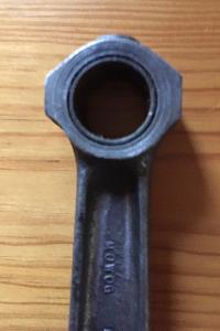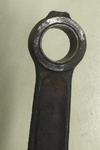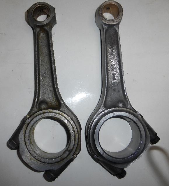 Early style (right) and later style (left). Notice the "ears" on the small end extra extension on bottom end allowing extra materinal for grinding down for final balancing before installation.