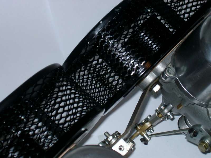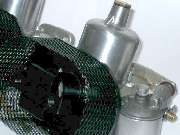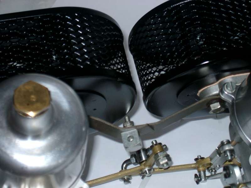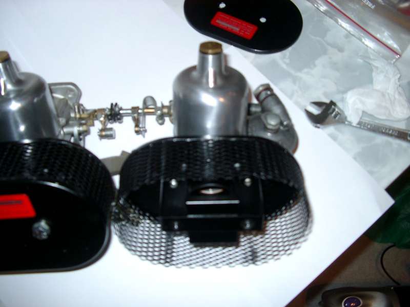 [Christopher Cox] -- Originally purchased Todd Clark Air Filters early 1990s and stored away. When I took engine to Peter Wood more recently he said Air Filters should be updated to the Venturi type. Peter said he had some and would do a swap, so I now have the Venturi type air filters (but think these are also Todd Clark manufacture). They seem well built and the oval steel gauze is spotwelded to the backplate around the circumference. The photos I have taken show the air filters with the inner felt filter elements removed.