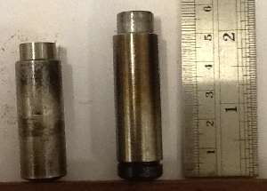 "It just so happens that a hardened front suspension distance tube has the same inside diameter as the Twin Cam inner tensioner plunger, so we machined up a 8 mm longer piston to take up the slack".