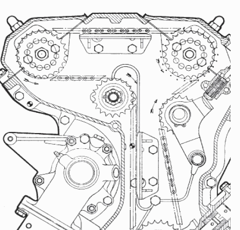 Please do refer to the Workshop Manual and Service Parts List for information on parts and installation of the Twin Cam timing chain. There are instructions for setting the crankshaft at 1/4 turn, 90 degrees from top dead center, to keep the high crown pistons away from the open valves, and special tool locking blocks to lock the camshafts in place. When all shafts are in proper position, there are instructions for indexing the cam sprockets to various holes to get the cam timing spot on. This is tricky stuff until you understand how it all works.