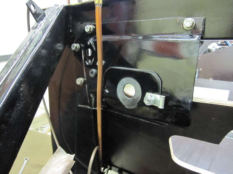 "Body attached. Normal gearbox with nothing changed, except that the gearbox cover sits on top of the floorboards and that the front upper fire wall is divided in two parts to avoid having to move the steering shaft.