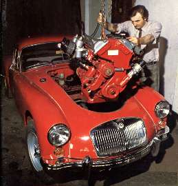 At right, cover photo from "Thoroughbred & Classic Cars" magazine, October 1979 issue. I suppose everyone can agree that this is a posed picture, and that the MGA Twin Cam engine could never be installed in that manner. The following notes are courtesy of Mick Anderson in Australia.